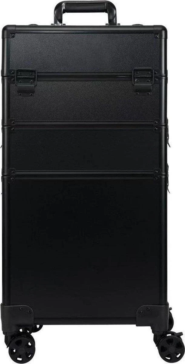 Beautycase / Beautykoffer / Trolley Voor Opbergen Van Uw Persoonlijke Verzorgingsproducten In 3 In 1 Van Aluminium – Bekleed Zwart Fluweel – 8wielen – Kapper – Tattoo – Nagel – Visagie – Make-up – Cosmetica – Schmink – Beauty Case / Beauty Koffer