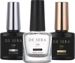 Primer, Basecoat en Topcoat voor Gellak Nagels. Een complete set flesjes van 10ML voor het aanbrengen van een mooie kleur gel nagellak zodat deze tot wel twee weken mooi blijft zitten! Salonkwaliteit, maar dan voor thuis!