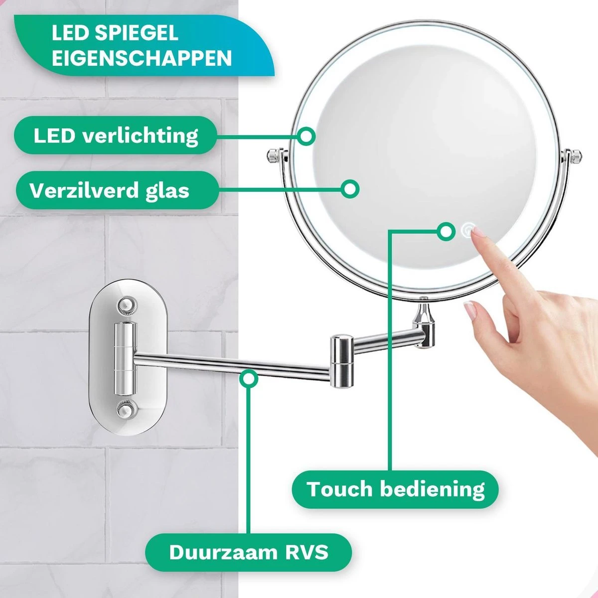 Wij weten als geen ander hoe uitdagend het kan zijn om er dagelijks op je best uit te zien. Daarom hebben we dé oplossing ontwikkeld: onze dubbelzijdige make-up spiegel die niet mag ontbreken in jouw badkamer of make-up tafel. Deze LED spiegel is niet alleen stevig en duurzaam, maar heeft ook een verfijnd en elegant ontwerp en is tegelijkertijd spaarzaam en functioneel. Aan de ene zijde biedt de wandspiegel maar liefst een 10-voudige vergroting, terwijl aan beide zijden prachtige en heldere LED verlichting zorgt voor perfect licht tijdens het aanbrengen van make-up. Het is dan ook geen wonder dat dit één van de beste make-up spiegels van 2023 is!