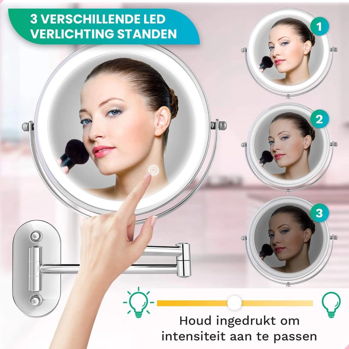 Make-up spiegel met 3 lichtstanden
