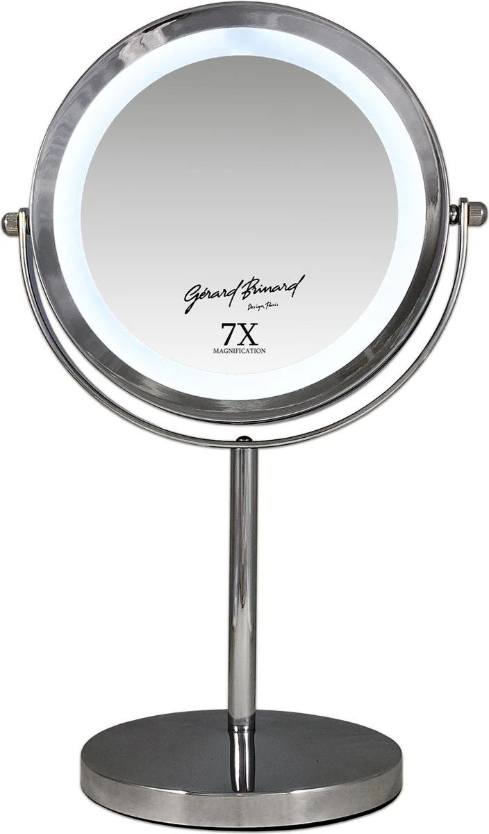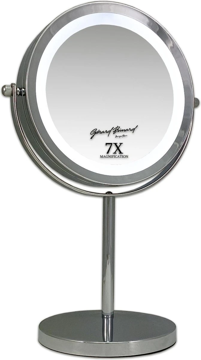 Voordelige make up spiegel gemaakt van hoogwaardig metaal. De spiegel is voorzien van LED licht welke aan beide zijde zichtbaar is. Aan de bovenzijde zit een simpele aan en uit schakelaar. Ook is de spiegel voorzien van een 7x vergroting wat perfect is om beter zicht te krijgen tijdens het epileren. Aan de de andere zijde zit een normale vergroting, je kan gemakkelijk switchen tussen beide vergrotingen doordat de spiegel helemaal roteerbaar is. Aan de onderkant van de voet zit vilt zodat deze geen krassen maakt op bijvoorbeeld uw badkamer meubel of make up tafel. De spiegel moet voorzien worden van 4AAA batterijen. Deze zitten niet inbegrepen.