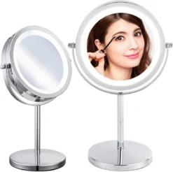 A&K Make Up Spiegel Met Ringverlichting | LED Verlichting | Scheerspiegel – Zilver
